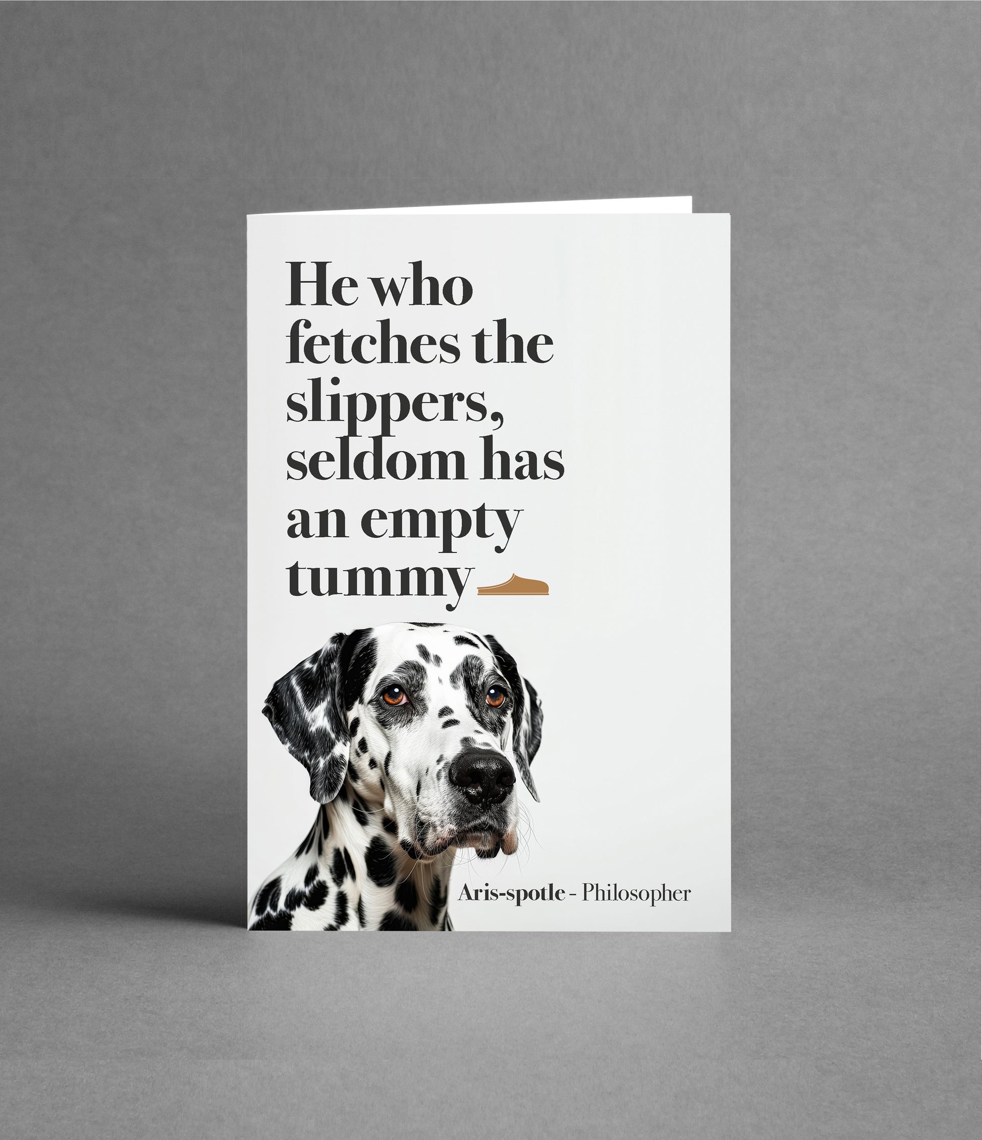 Aris-spotle is pictured staring sagely at the camera, as he offers philosophical wisdom to his canine brothers and sisters.